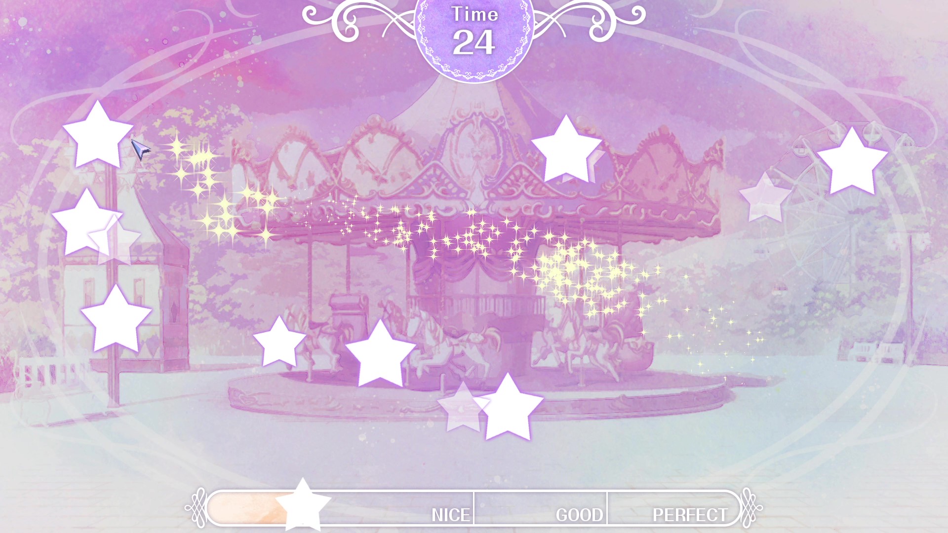 Aside from the UI, the gameplay is fairly standard for a visual novel — skip functions, autoplay, ect. There’s a minigame called the Éveil System, which is essentially what happens when Emma practices her magic. You literally just tap stars on the screen (albeit it’s better to just swipe around rather than tap). Technically, it affects the story but after you play it once you can actually skip it and it’ll default to the best score. It’s not a bad addition to the game, but not totally necessary either.
